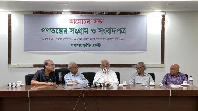 নির্বাচন করতে দেওয়া হবে না, এ কথা বলছে না।’ গণসংস্কৃতি ফ্রন্টের সমন্বয়ক ইফতেখার আহমেদের সভাপতিত্বে ও সঞ্চালনায় অনুষ্ঠানে লিখিত বক্তব্য পাঠ করেন বাংলাদেশ লেখক শিবিরের সভাপতি হাসিবুর রহমান। এ সময় আরো বক্তব্য দেন অধ্যাপক সিরাজুল ইসলাম চৌধুরী, সাংবাদিক সোহরাব হাসান ও সাংবাদিক নূরুল কবীর।